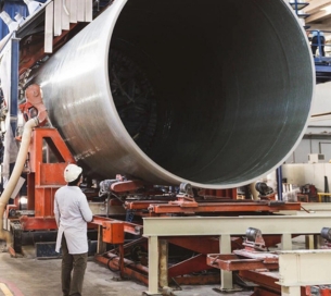 O sistema de revestimento com fibra de vidro utiliza resinas especiais reforçadas com mantas de vidro, oferecendo altas propriedades mecânicas, excelente resistência a agentes químicos e ótima aderência. É adequado para diversas temperaturas de operação.
